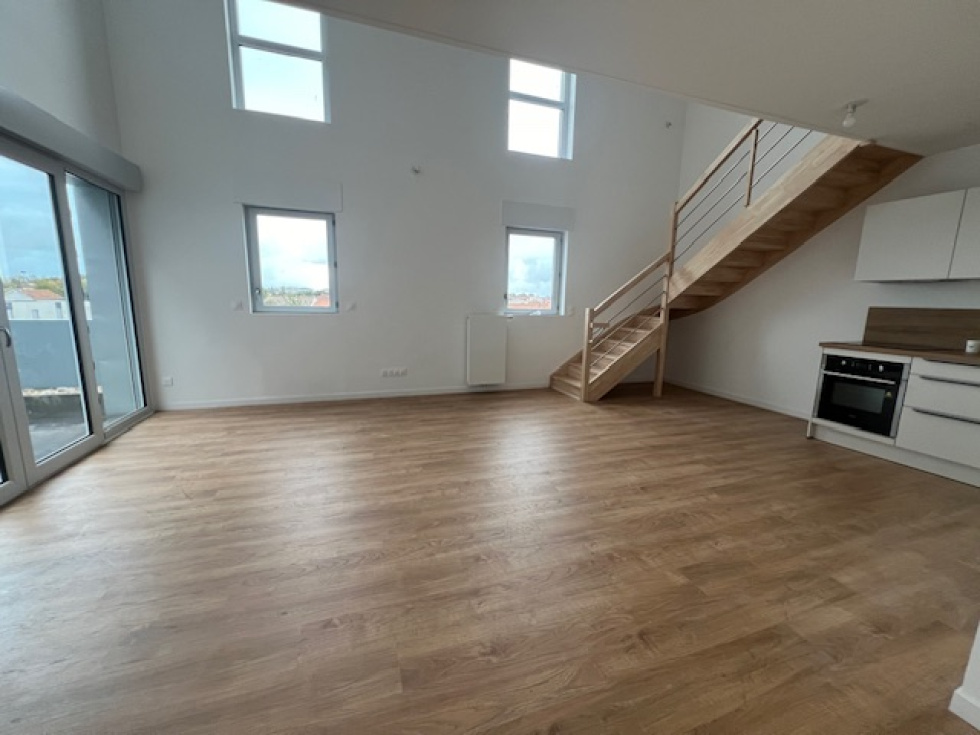 LA ROCHELLE TASDON, rue François Viète, appartement duplex T3 de 2024 de 65 m2 avec grande terrasse de 19 m2 comprenant: Une entrée, un salon avec cuisine aménagée ( plaque de cuisson, hotte et four), un cellier, 2 chambres, une salle d'eau avec wc, un wc. Une place de parking en sous sol. Disponible le 2 avril 2026, loyer 923 euros, provision pour charges 80 euros, honoraires 845 euros ( état des lieux inclus) Bien soumis au régime fiscal loi Pinel et à une assurance garantie de loyers impayés. Je vous remercie par avance de bien vouloir prendre le 1er contact par mail à l'adresse suivante: larochelle@patimmo.com, en indiquant vos coordonnées téléphoniques, vous serez recontacté dans les meilleurs délais.